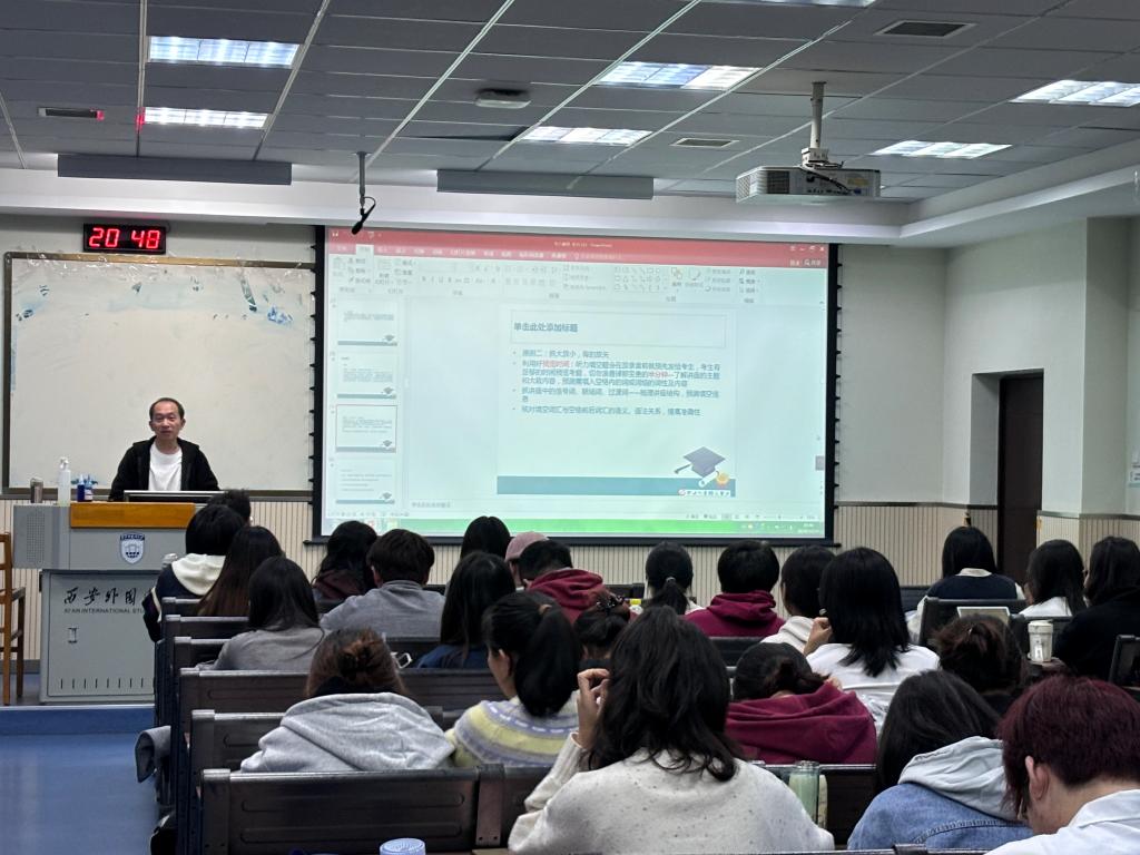 第三期“专八”考前辅导班在教学楼A306开班。出席开班仪式的有学院副院长吕斌、英语语言中心杨达复、王九萍等部分参与辅导教师及受训学生60余人。