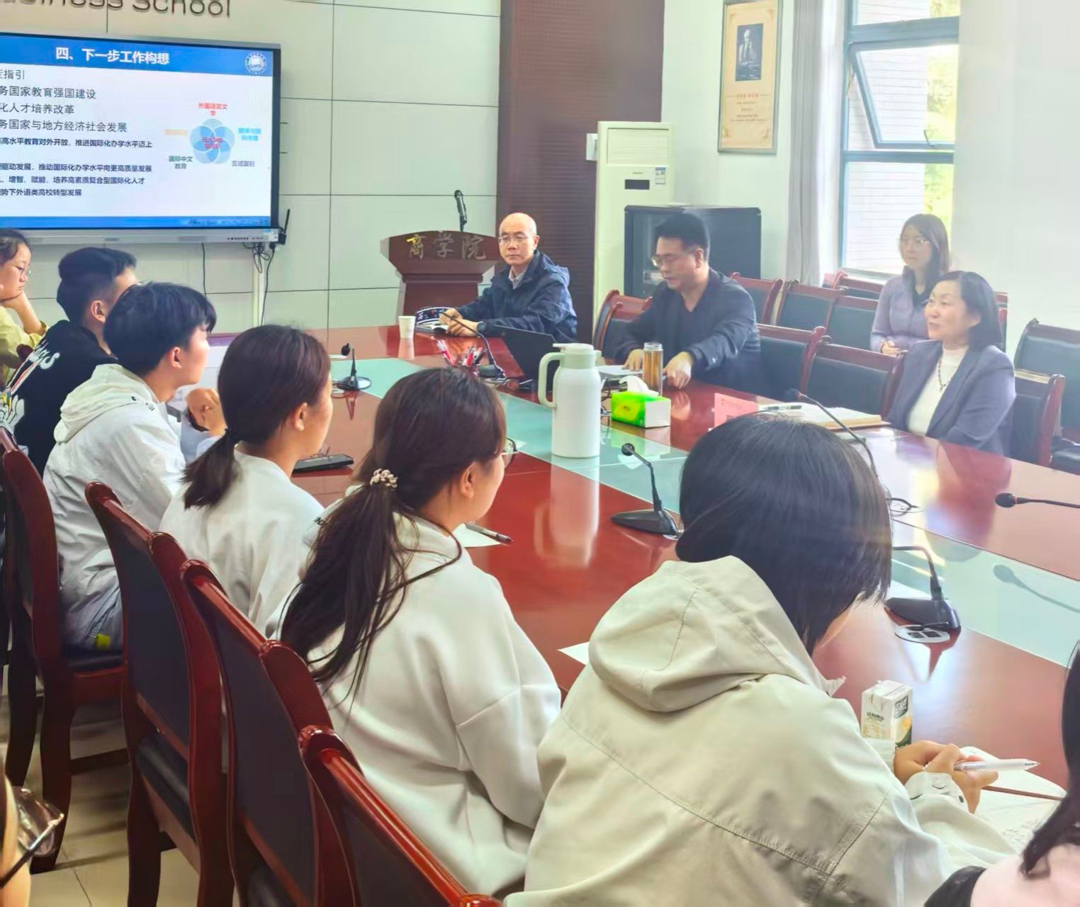 邓滢副校长认真倾听每一位同学的发言,对大家提出的疑问与建议逐一耐心回应、深入交流。她勉励同学们要珍惜来之不易的学习机会,充分利用好学校的优质资源,既要养成自律严谨的学习生活习惯,夯实专业知识根基,锤炼过硬专业本领,更要树立远大理想,培养国际视野,努力成长为胸怀“国之大者”、能够担当民族复兴大任的卓越人才。